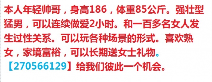 如果有需要援交、经济资助的的也可以联系我,根据质量来给与价格,给你赚钱机会,让你的女人尽情释放,让你的生活有所提高(真诚交流、沟通、玩的是快乐,看的是人品,我懂你的顾虑,你来给我快乐,绝不牵扯到各自生活中去),装逼的,骗子,上来让发这发那,提各种这样、那样sb要求的,请你回家看看自己的脸,本人没那么饥渴,没那么缺,我不吃白食,但是不和sb打交道,没有资源的也请不要找我,装逼、骗子、智力发育不全、人妖、单男跪求勿扰。没时间陪你们在那意淫,。谢谢勿扰