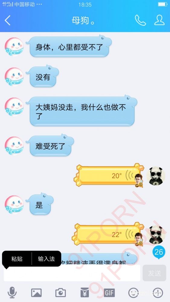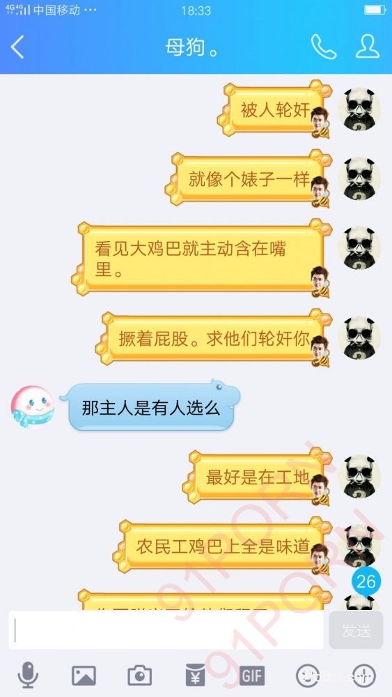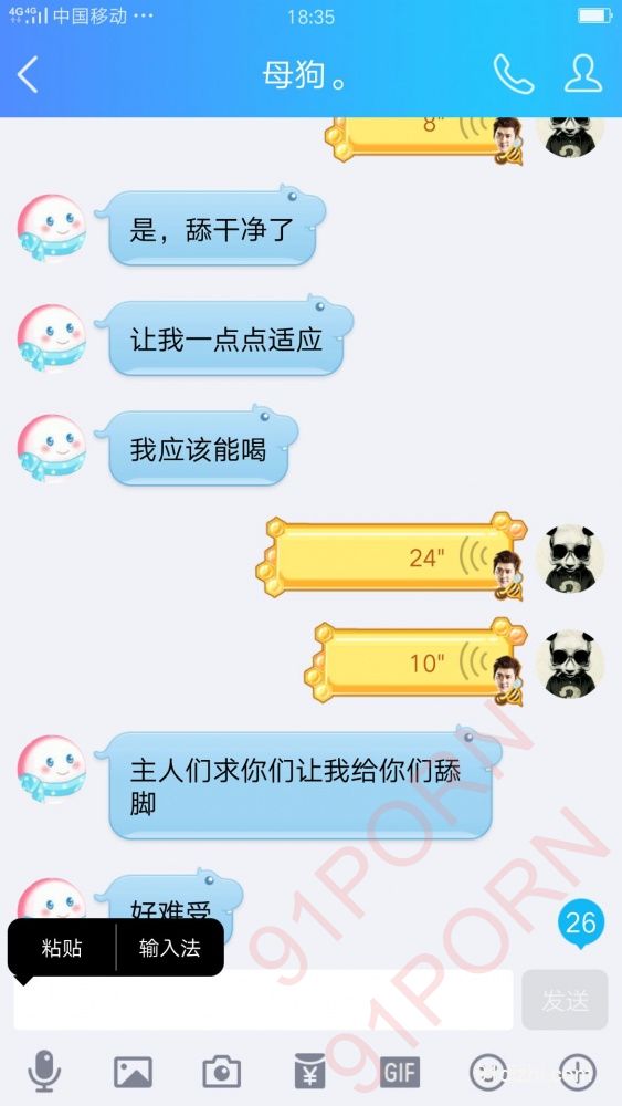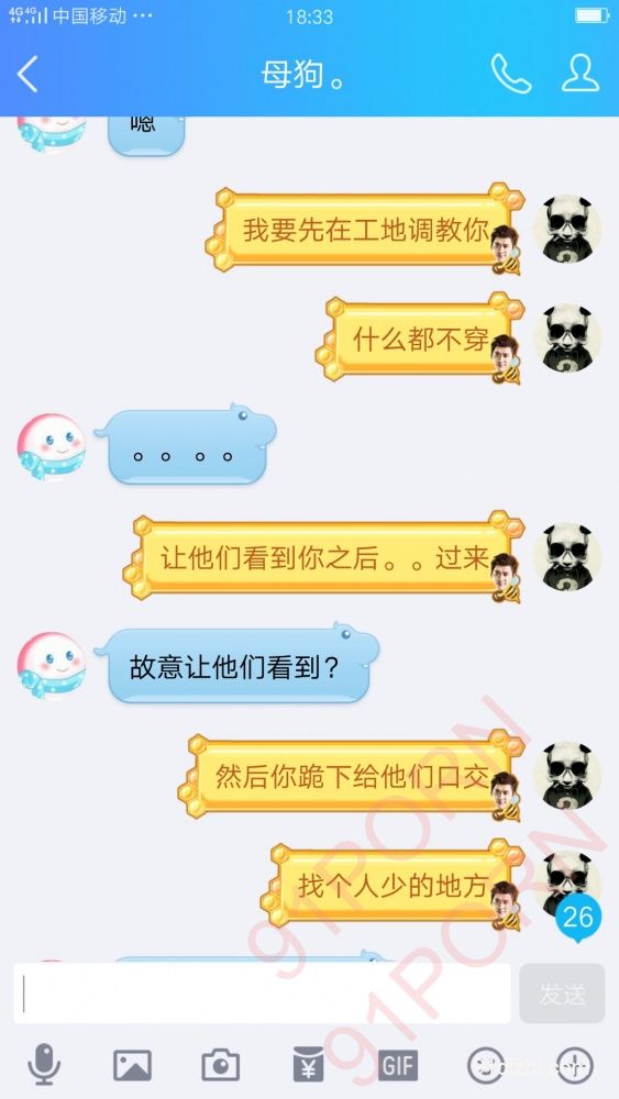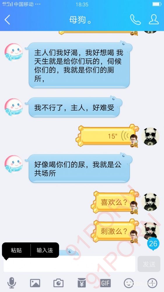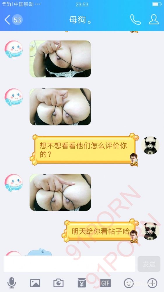 你们就好好的看聊天记录吧 不雅于经典小说哦 此母狗例假期间 在朋友家里也没什么道具 所以只能虐乳 后续回家给大家放更精彩的 你们想要怎么玩弄母狗 尽情的羞辱她吧 可以重口羞辱 想怎么骂她都可以 用最粗鲁的语言羞辱她吧
