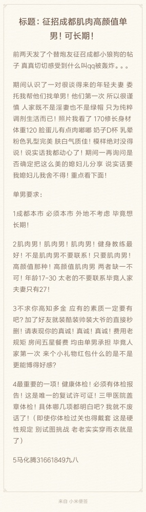 征召成都高颜值肌肉男!非诚勿扰! 发帖