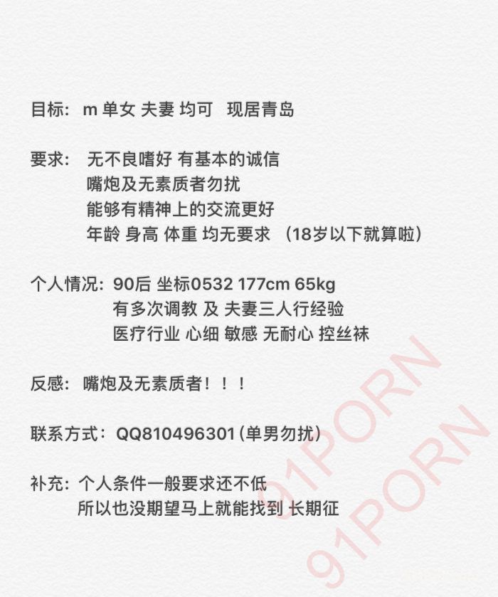 目标: m 单女 夫妻 均可 现居青岛