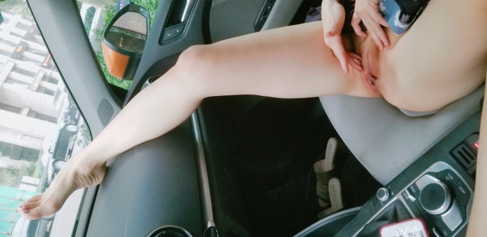 在与2位单男4P后的第二天,在整理照片过程中,看到台湾小草莓淫荡的肉体,忍不住又搭起了帐篷,于是台湾小草莓提议到车上帮我吸出来,真是24小时stand by的吸精小妖精。由于我们都很调皮贪玩,想体验被路人偷窥的快感,便将车开到了某shoppingmall的路边,望着来来往往的行人做起了苟且之事,中途台湾小草莓正在吸肉棒,有一对女士面对面朝我们走来,眼神应该是看到了车内发生的事情,之后很害羞的避开了……下次围观的会是你吗?