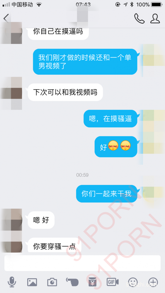 我们是CQ的90后夫妻~单男是之前3P过的 一直留着联系方式~骚货老婆昨天和我一起和另外一个单男视频做爱之后意犹未尽,居然背着我睡觉时继续和3P过的单男骚聊~内容不堪入目~发上来和大家分享~自从成功开发老婆之后,她就越来越骚了,每天欲罢不能,我们之前发了很多要求单男射屏的帖子~她也非常喜欢~还和之前这个3P过的单男分享细节,哈哈,真是骚货一个。