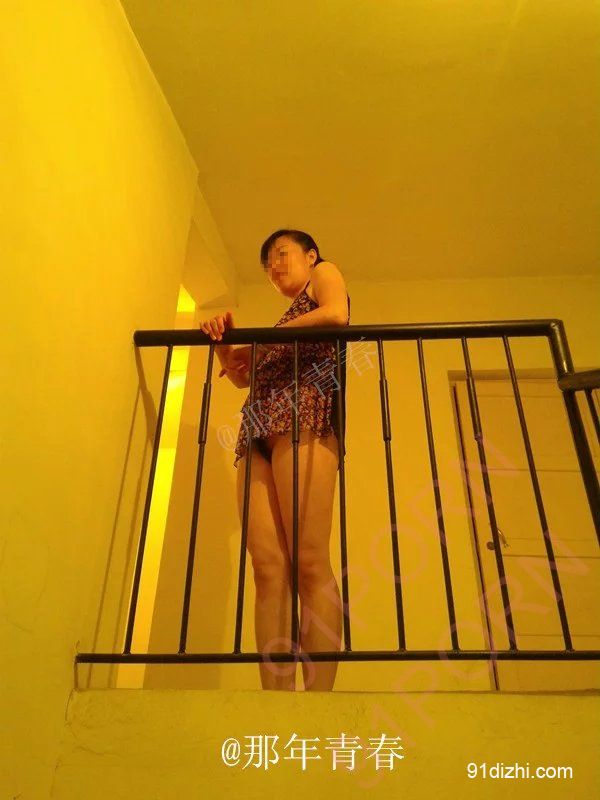 在楼道昏黄的灯光下,老婆展现出她的美丽。