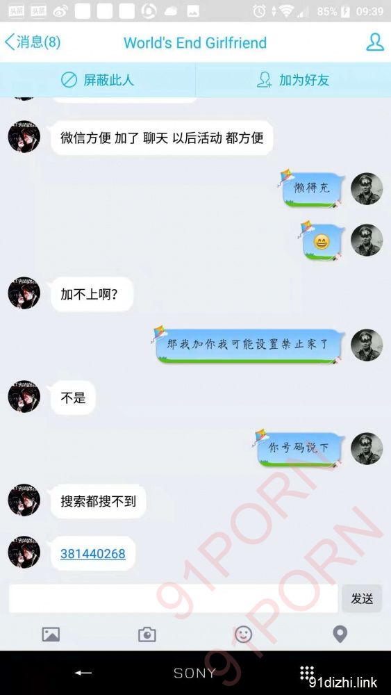 本帖最后由 Nazizard 于 2018-10-14 07:56 编辑 qq号码是381440268,微信号码是yxiiiiiiiiiiii的,说91活动,但是发了红包有忽悠变成双休日,然后第二天就微信,qq全部拉黑,各位不要上当名字叫做world·s end girlfriend,qq微信同名