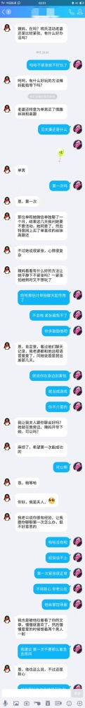 与夫妻分开之后,第二天的下午,对方丈夫(以下简称小c)小c给我发来了短信,问我昨天感觉如何? 我开玩笑的说:感觉一般,你太小了! 小c:啊,我也知道,我的确不是很大,是不是没有高潮啊?我说:没有,不过还好虽然小但是也够用,我不需要太大的,如果需要大的我就找老外了! 小c看出我在逗他 于是回答:那我的应该够用了,主要还是看感觉嘛,男人女人如果没有感觉,很难去高潮,我看到你那么有女人味,而且波涛汹涌,我就认定你了,心跳砰砰的,一直想要偷偷要你的wx,却没想到被你先下手了! 我还是比较保守哈哈! 我说:切,鬼才信! 那你不要我的还要我主动! 不过心里却很有感觉,因为我不太喜欢很油嘴滑舌的男人,看他老实,就加了他!