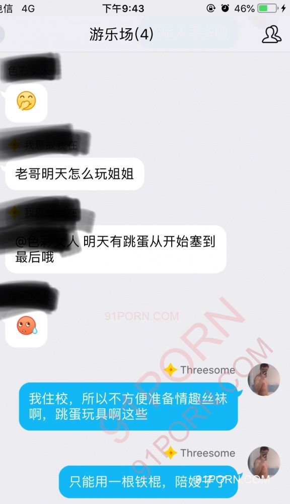 让我难忘的,还有把跳蛋塞进阴道里,然后再把鸡吧插进去,整个阴道都是酥麻的感觉,抽插的时候,把跳蛋顶得更加深入,嫂子的刺激越大,阴道收缩得越紧,鸡吧的刺激也就越强烈,唯一遗憾的是,她们时间比较紧,并没有玩多久,仅仅2个多小时,便离开了酒店,远不及上次跟小仙女,一夜大战8次那么酣畅淋漓。但是嫂子走的时候,意犹未尽,期待着下一次的到来。这次活动,嫂子不让拍照,我就放点我们的聊天记录好了