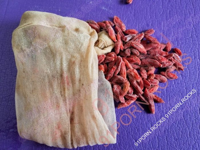 我是早上上班前放进下面里去的,枸杞特别干,刚开始的时候感觉塞进了一大堆碎石子走路都很吃力,一直到当天下午才慢慢适应,晚上睡觉前的时候还是感觉阴道很干而且涨涨的,一整夜都没睡好,等到第二天起来的时候里面感觉不那么硬了,黏黏的像是塞进一桶固体胶一样。到第二天中午就感觉又粘又滑又很胀,枸杞在穴穴里面四处窜,不过走起路来还挺舒服的。直到晚上才顺利的拿出来,第一次养东西就养了两天两夜,然后挂起来风干,干了以后就是这个样子了,丝袜上白白的和枸杞上那些白白的粉末估计就是我爱液干了以后的东西。