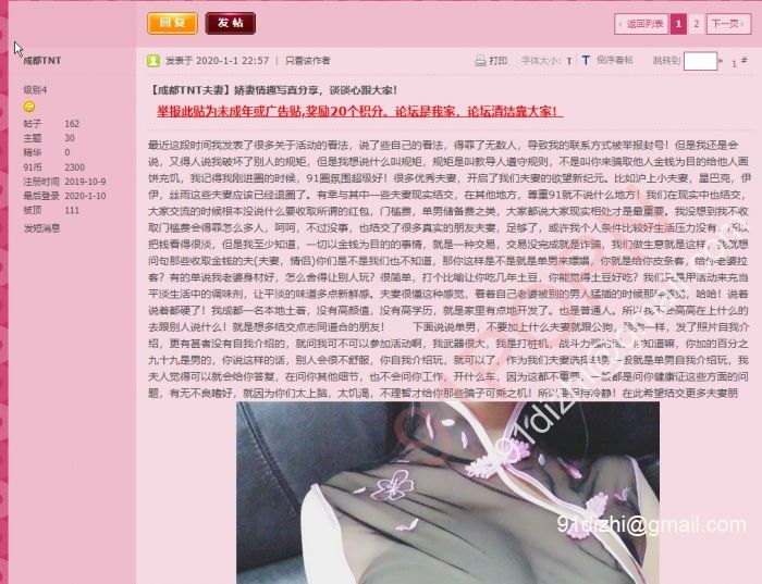 1月3号,发帖标题“【成都TNT夫妻】纯福利分享,娇妻情趣内衣!” 可能是前天写了太多字还没缓过来,这次直接就发盗图了,图片来源野百合