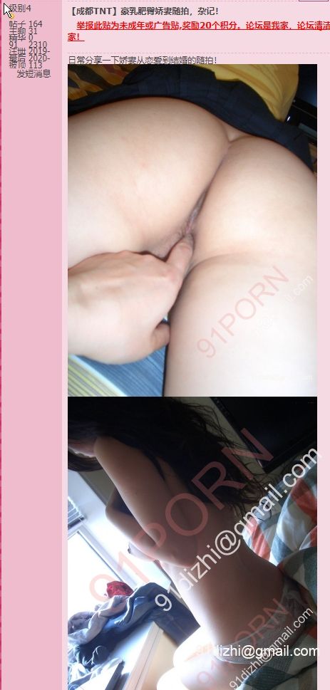 1月5号,发帖标题“【成都TNT】豪乳肥臀娇妻随拍,杂记!” 不知道是还在缓着呢,还是在别大招,依旧没有正义凛然的文字,直接甩上盗图,图片出处是2010年的一对南通新婚夫妻,看起来貌似也是被泄露的,有露脸照,我就不直接发图出来了,好奇的自己谷歌关键词去找吧