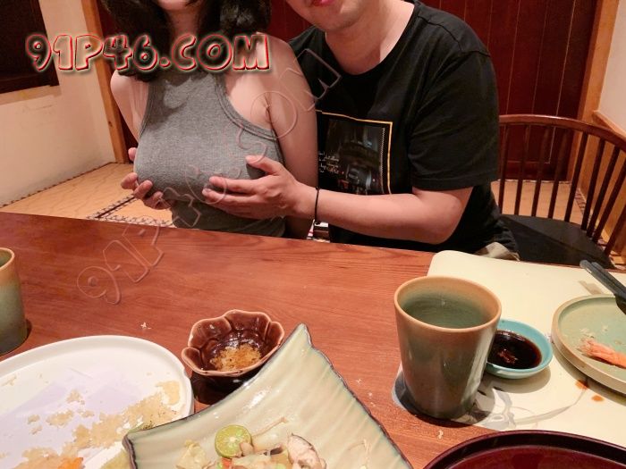 随着Z先生掀起背心,一对白嫩滚圆的咪咪蹦了出来