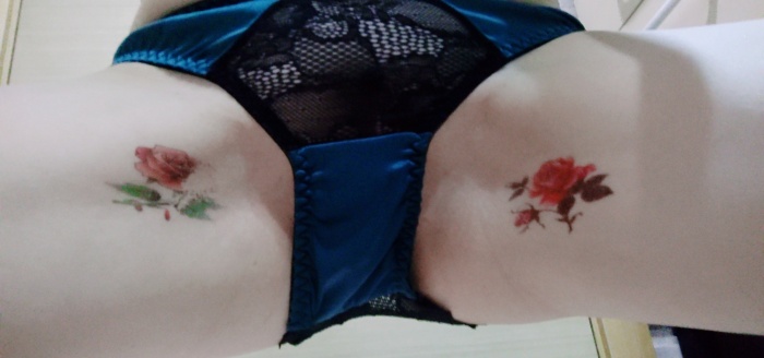 纹身很漂亮,纹在大腿根,性感诱惑。