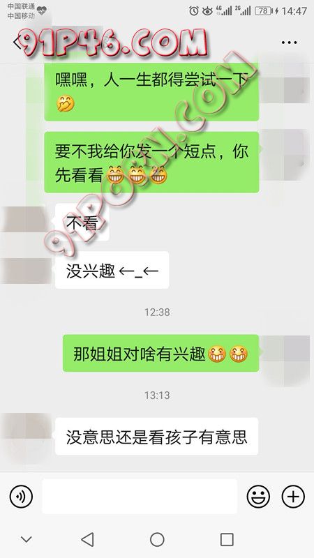 昨天,她上午去逛街了,我俩没怎么聊。下午她回家后我俩聊会,当时她老公就在她旁边她还和我调情,我发一张我穿睡裤的晨勃照片给她看,第一次发我没敢太暴露。她没骂人,还发“哇”表情,说:吓唬谁呢?我说:吓唬你呢,她发一张含羞表情。嘿嘿,我约她晚上请她吃饭,她说:晚上不行,得看孩子。我说白天呢?她没回复我着急去接孩子。