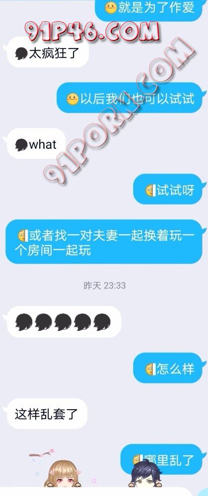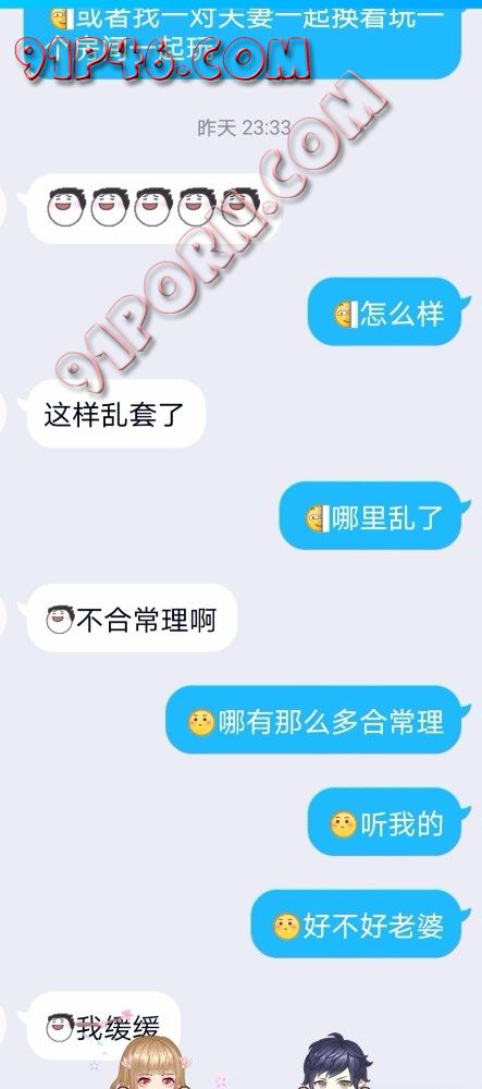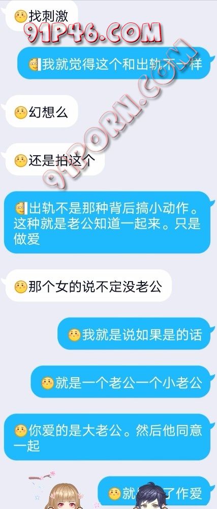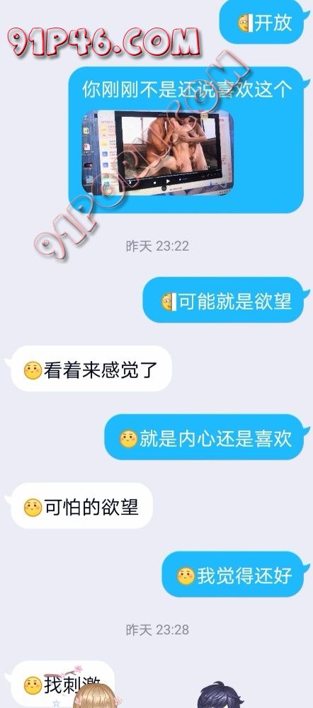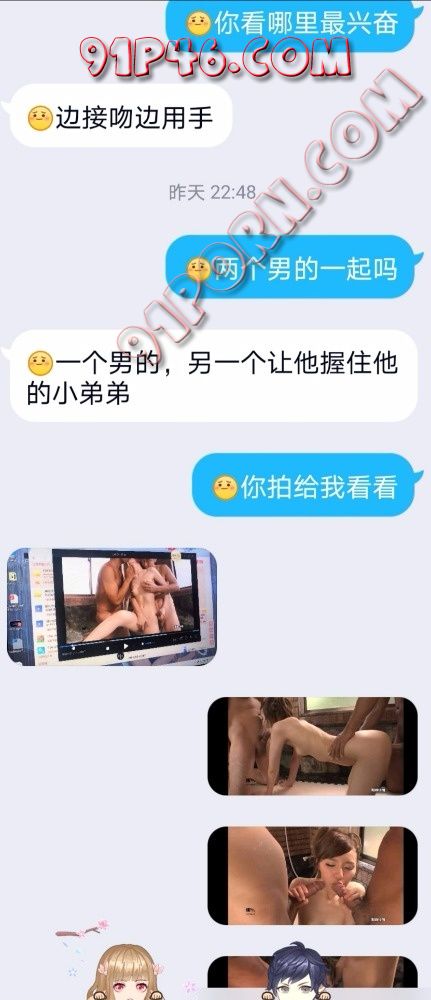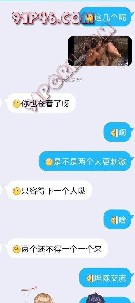 事情是这样的,今天无意间和我老婆提到了看黄片。我们异地,我就选了一步3P的种子发给他,我也不知道当时怎么想的。她跟我时候是第一次,恋爱三年刚结婚,没有过其他男人。边看边和他交流。结果他告诉我最兴奋的片段是下图。就是一个男的扣着穴和女的接吻。另一个在后面抚慰,然后手里一只手握着一个。。。。。然后我以前从来没表述过我看91,也没从来没有提过绿的想法。今天脑子一激动就说了。没想到她没直接拒绝。。。。。。。我老婆平时很闷骚,虽然是我破的处。但是我要求的口交,肛交,吞精,暴露作爱,视频作爱(我们因为工作原因经常异地)做这些,都是要求就做。包括带小尾巴等等,当我老婆没有直接拒绝的时候我一下就射了,然后我就开始有点后悔和她说这些,可能是我还没准备好吧,我还是可以接受的,只是我感觉还没操够有点舍不得。但是我感觉我老婆是开发潜力无限大。我怕我收不住了。。。。