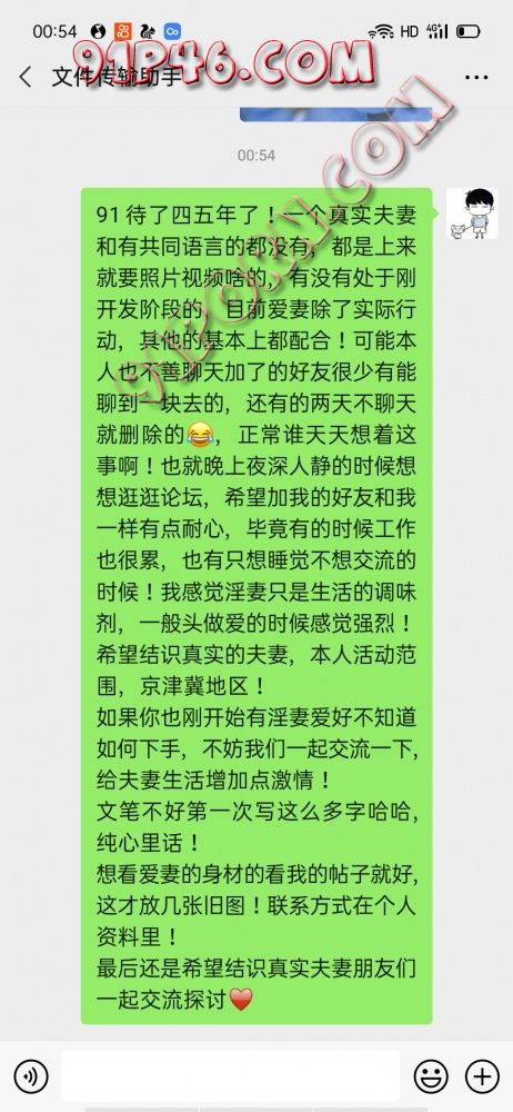 91待了四五年了!一个真实夫妻和有共同语言的都没有,都是上来就要照片视频啥的,有没有处于刚开发阶段的,目前爱妻除了实际行动,其他的基本上都配合!可能本人也不善聊天加了的好友很少有能聊到一块去的,还有的两天不聊天就删除的