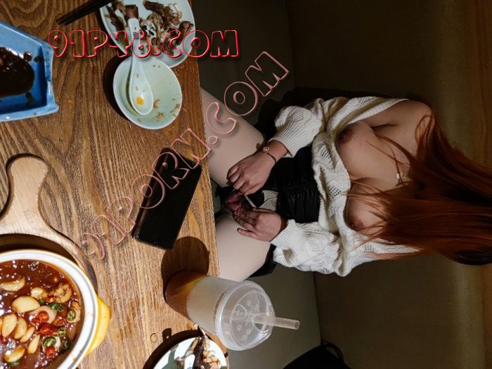 因为菜都上齐了,就直接在包厢里把她丝袜撕开,拍了一些照片。