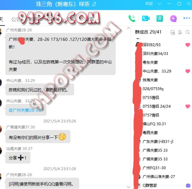在最近数月给CP朋友投稿发帖中建了两个活动导向的交换小圈子,群里都是有真是交换意向的CP:一个是粤西,另一个是珠三角(附粤东),现共50对多。根据群里要求,必须验证CP双方实践意向真实性,比91级别的验证略严格。