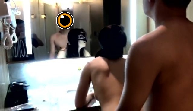 看情形差不多了,就跟她讲,想叫个人过来拍照,女友不同意,但是不坚决;然后我就说,那我们去镜子前面操吧,女友说,你让我戴着眼罩,我自己也看不到啊。我说我看的到啊,其实也是为了方便开门。转战到镜子面前,看一看沉甸甸的大白兔,下面图片为视频提取照片,不太清晰。