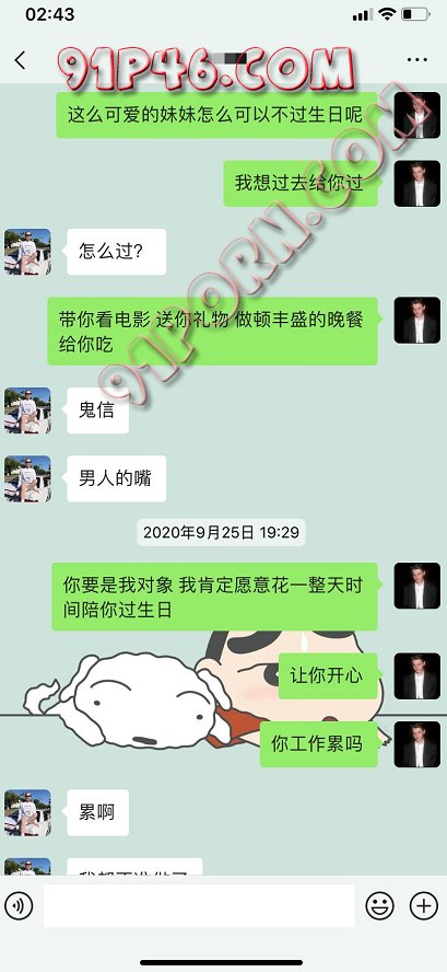 于是中间我整整一个月都没跟她怎么聊,偶尔就是朋友圈相互互动一下。当我在9月25号的时候看到她发了一条朋友圈,得知今天是她生日的时候,我觉得机会来了。因为我一直有关注她的朋友圈,觉得她好像最近过得不是特别好,而且生日的时候好像还在工作,于是我在这个时候找她聊天了。聊天的第一句,还是漂亮妹妹,先夸一夸她。