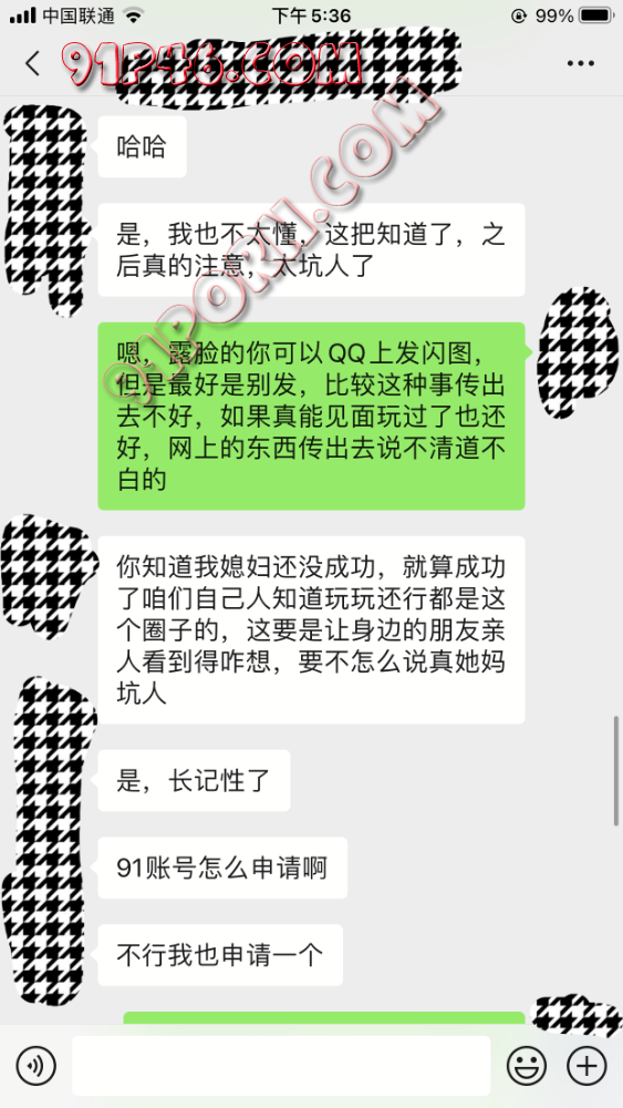 下面进入正题,这个朋友是去年年底的时候加的,当时在论坛认识了几对老家的夫妻情侣,然后我建立了一个小群方便大家交流,这个群目前也会拉人进,但是我会进行认证,认证时间会比较久,主要是确定是不是靠谱的人,情况是否属实。言归正传,其实过完年我们大家在群里都说话比较少了,也就个别人之间偶尔聊几句,我记得当时这个哥们进群也分享过自己媳妇照片,开始还有几个人把自己媳妇拉倒我们群里,其中就有这个哥们,后来媳妇们都不好意思就退群了,然后转折在今年七月份,这个哥们突然联系我,原因是他在91看到一篇帖子有她媳妇露脸照片以为是我发的帖子,然后看了一下帖子发现是骗人的,后面聊天记录会有。因为发现是个骗子我帮这哥们举报了一下帖子,这里不得不说91的管理员们真的很给力,我刚举报帖子就删掉了,这里给91各位管理员一万个赞