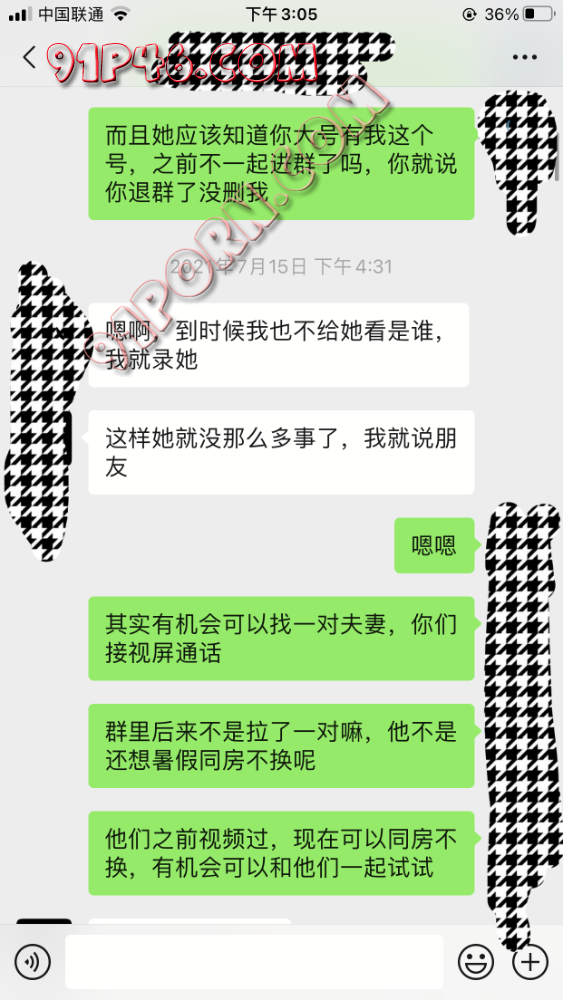 浅色马赛克是和嫂子聊天的,深色是个哥们聊天的。