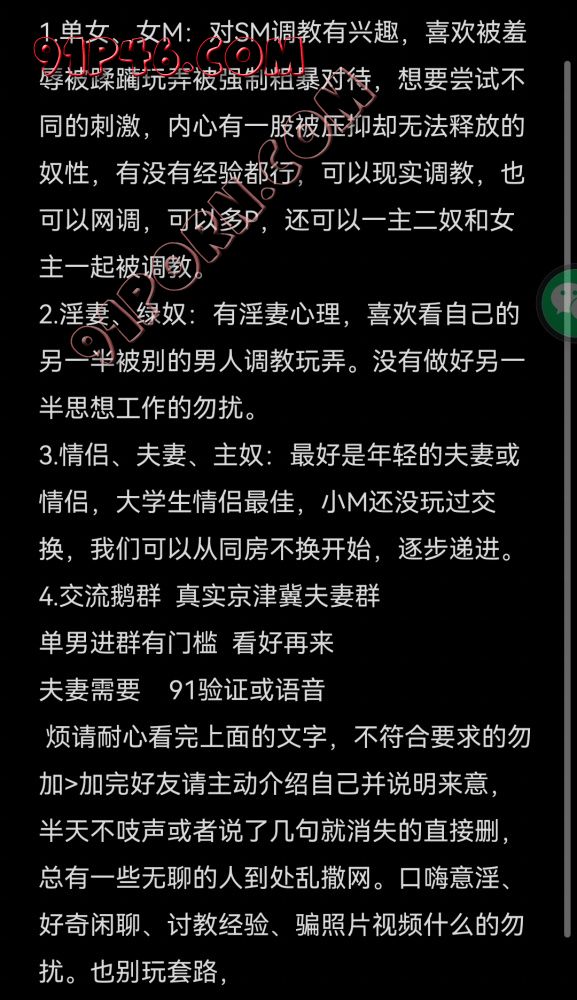 烦请耐心看完上面的文字,不符合要求的勿加>加完好友请主动介绍自己并说明来意,半天不吱声或者说了几句就消失的直接删,总有一些无聊的人到处乱撒网。口嗨意淫、好奇闲聊、讨教经验、骗照片视频什么的勿扰。企鹅:[email protected]@[email protected]@736