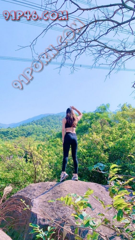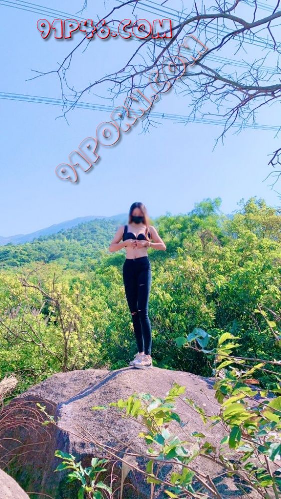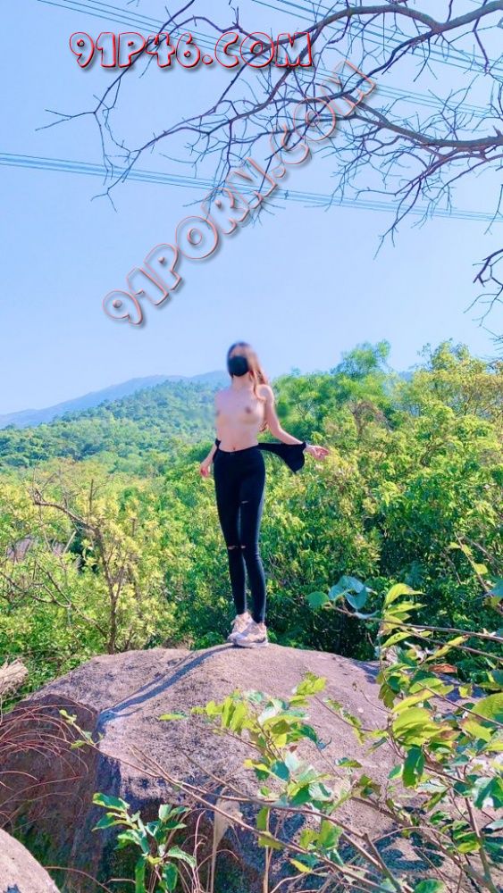 在山顶的石头上女王脱光上衣露出两个大奶