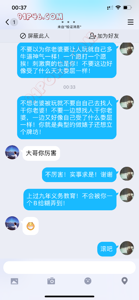很气,不叼他几句心里不爽!以为自己什么玩意!靠老婆被操神气什么!