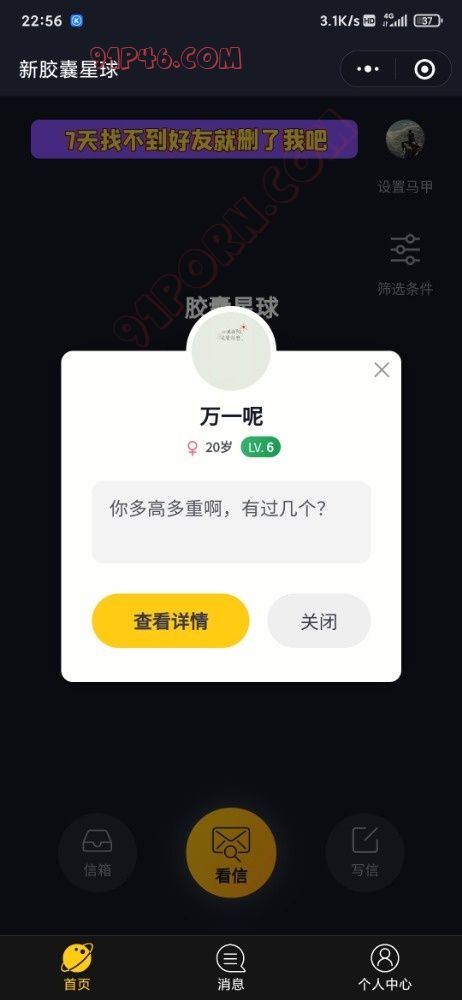 首先我不是打广告,去年都有老哥再说着这个wx小程序了,这里面狗狗多啊。两性集结地,如果看不不了信,等几分钟再进去。