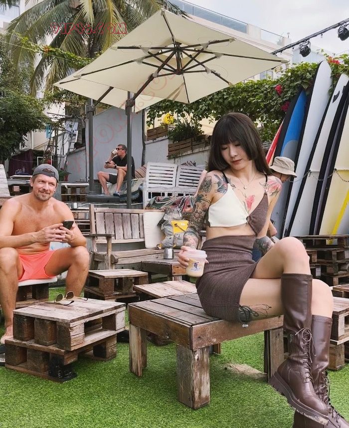 中间给她抓拍了一张,后面的老外全程一直盯着她,不知道看腿还是看纹身