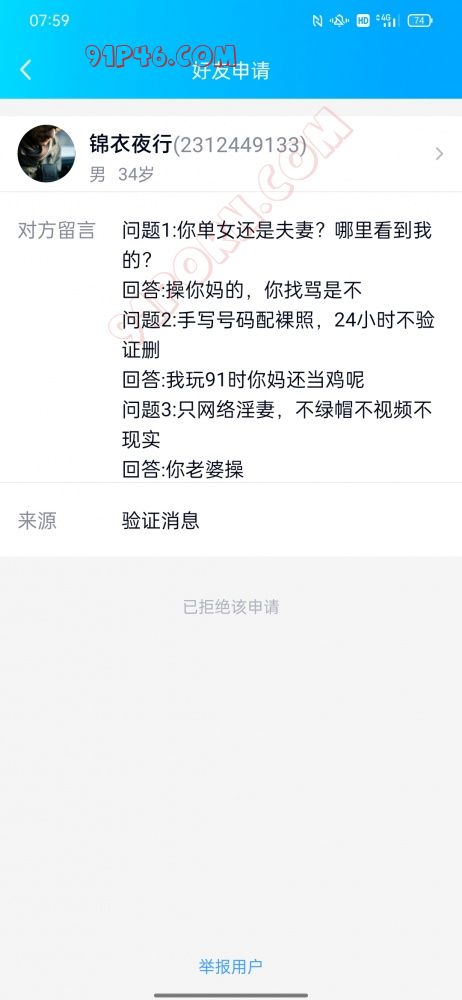 骗子论坛帖子盗图p上去验证被识破来骂我,这骗子还反咬说我加它,它想加我我没理拒绝了