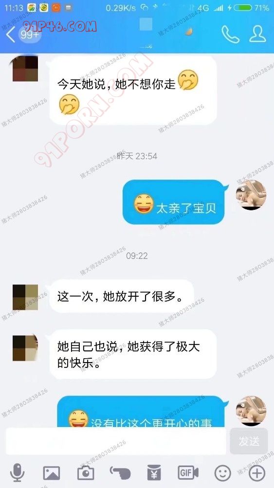 这可能是一对最特殊的夫妻了,老公加了我好久,每天都在和我聊天,说媳妇不同意,发他和媳妇聊天记录,一般来说,只要老公耐心,每天提,一般最后女的都会勉强同意。也许这个老公是和我聊的最多的人了,经过长时间的软磨硬泡,他媳妇终于答应接受按摩了,我们在酒店见了面,她小巧玲珑,长相也很不错,但是表情很勉强,一般我按摩时候因为用心用力,会很热,所以一般我开始会脱的只剩内裤,但是她看到我脱衣服时,马上表现十分抗拒,不许我脱,否则她就不按了,马上走,让我和她老公都很尴尬,没办法,我只好穿着秋衣秋裤给她按,真的热坏我了,按摩到胸部时她很不配合,我也没办法用舌头,只能最大尺度用手按摩胸,虽然她没表现出享受,但是当我手长时间停留在她胸和腹部时,我觉得她感觉是很好的,很舒服,她始终没有脱了内裤,按摩了一会就结束了,我以为这又和以前曾经遇到的情况,女人压根没同意,男人勉强尝试,最后不了了之! 没想到过了几天,老公尽然又约我,这次她尽然忽然像变了一个人,出奇的配合,一切顺利,最后老公抱着她,把她搂在怀里,扒开她的双腿,我狠狠的大力抽插,她享受的发出美妙的呻吟。事后老公把聊天截图给我看,她真正得到了享受!
