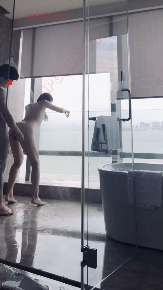 一开始妹子害羞说要把窗帘拉上,后来放开了觉得趴在落地窗上看着外面的风景被后入好爽好刺激,说以前没体验过