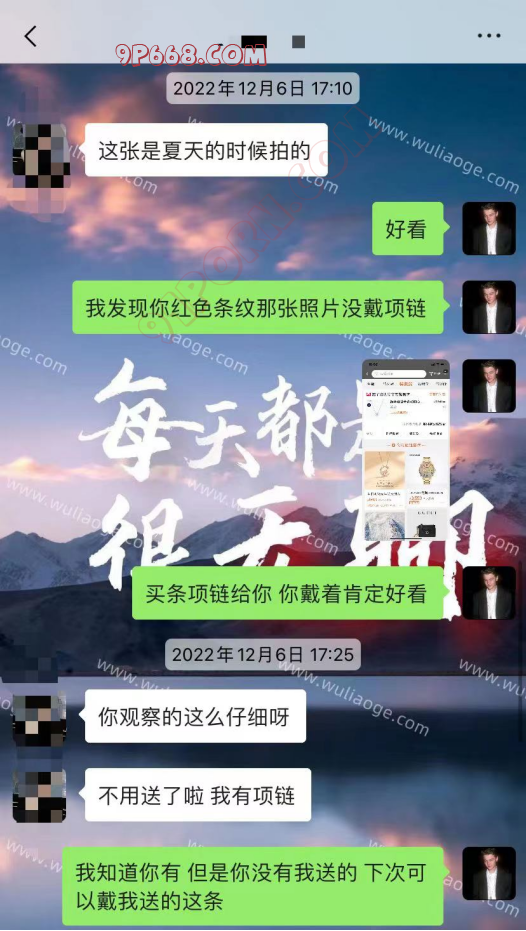 同时你这么表达,也是非常低价值的行为,等同于这个男生在这个时候承认自己不够魅力无计可施,吸引不到这个女生了,他想提出通过礼物去吸引妹子。而这份礼物是项链,也就是说这个男生自认为他的价值对于女生来说都比不上一条项链。犯了这些错误,没有后续很好的斡旋,两个人已经基本没有可能了。