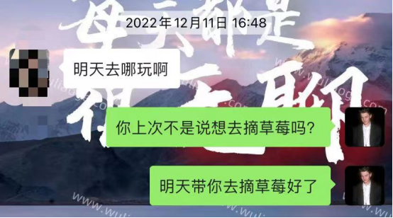 五天之后,我跟她约好去摘草莓。之所以我决定去摘草莓有两个原因,一点是在某次聊天中她说过她很想去摘草莓,这样会让她觉得我很细心她说过的话我都有记着。二是因为摘草莓很便宜,约会成本大概也就三四十块钱,并不是女生跟我提过想去吃澳洲大龙虾,我就会把约会项目定位澳洲大龙虾。约会项目的挑选,也需要变通,看看是否利于你去升级关系。