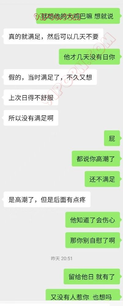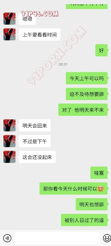 我出差在外地暂时回不去,她这个月5号就就去和她情人3天,期间我打电话给她结果她突然叫了一声回来我就出门了,昨天和她聊天她说想鸡巴了,说自慰不过瘾,准备过两天约
