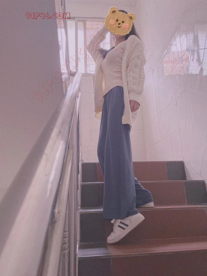 楼道很少人,但是还是有点小害怕,也不敢脱太多