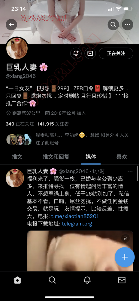 你推号多少,我去关注一下,我也进过电报群,说让下载APP进大群,我直接给骂过去了,下载一个不知名的APP,肯定把手机里面的通讯录信息给搞走了,TMD