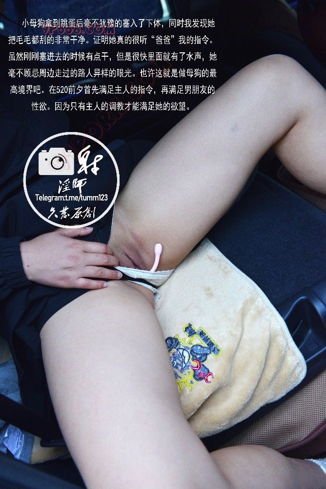 其实这是一个“钞能力”的故事,在520来临之前,将“小母狗”约出来进行户外调教拍照,晚上20点之前完成了调教,随后将其送到男友开好房间的酒店楼下,拿出了那枚水淋淋,粘有我精液的跳蛋。