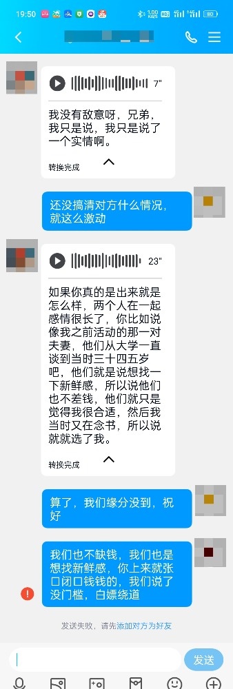 嫖客都没这哥们口气大,话没说完就删好友,要不是有素质,差点没忍住加回来重新骂,不行,我要骂回来!