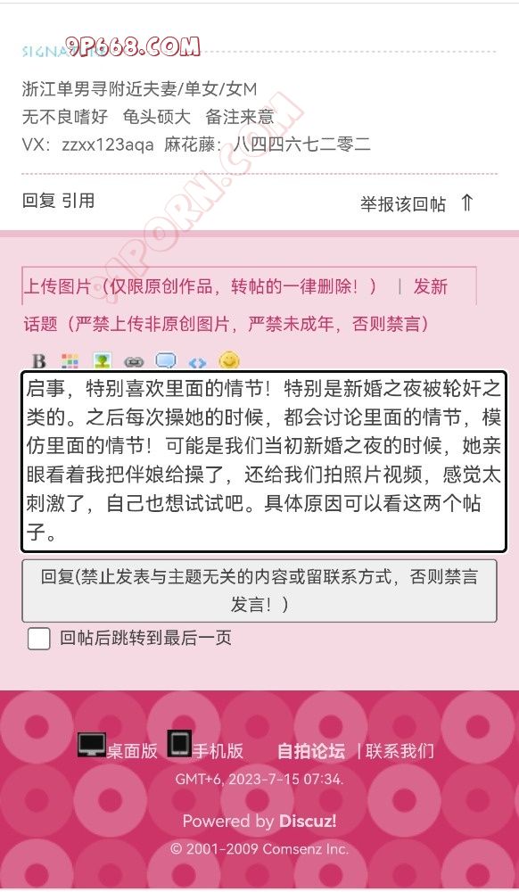 上次发了那个活动帖之后,媳妇每天都会看回帖,看联系我们的夫妻、单男们发的消息。