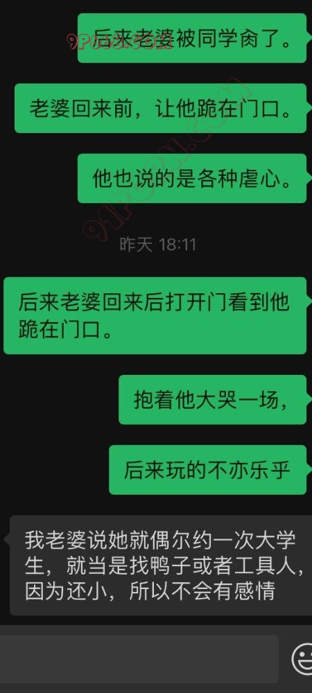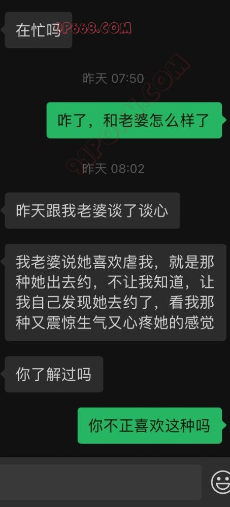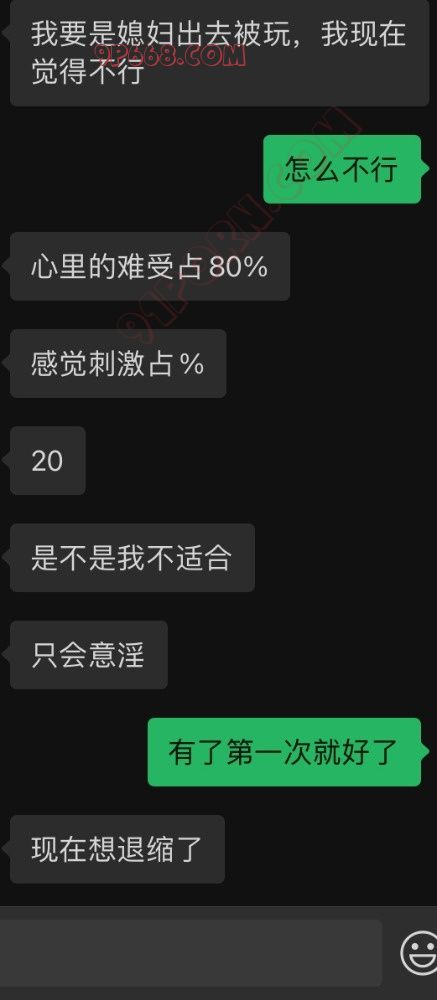 下面是和一个绿奴兄弟的聊天记录,加他好友四五年了,一直想做绿奴,奈何老婆一直不同意。这段时间他老婆蠢蠢欲动,他缺想退缩了。命运的齿轮开始转动剧情翻转。有过经验的可以说一下。企鹅3157432147