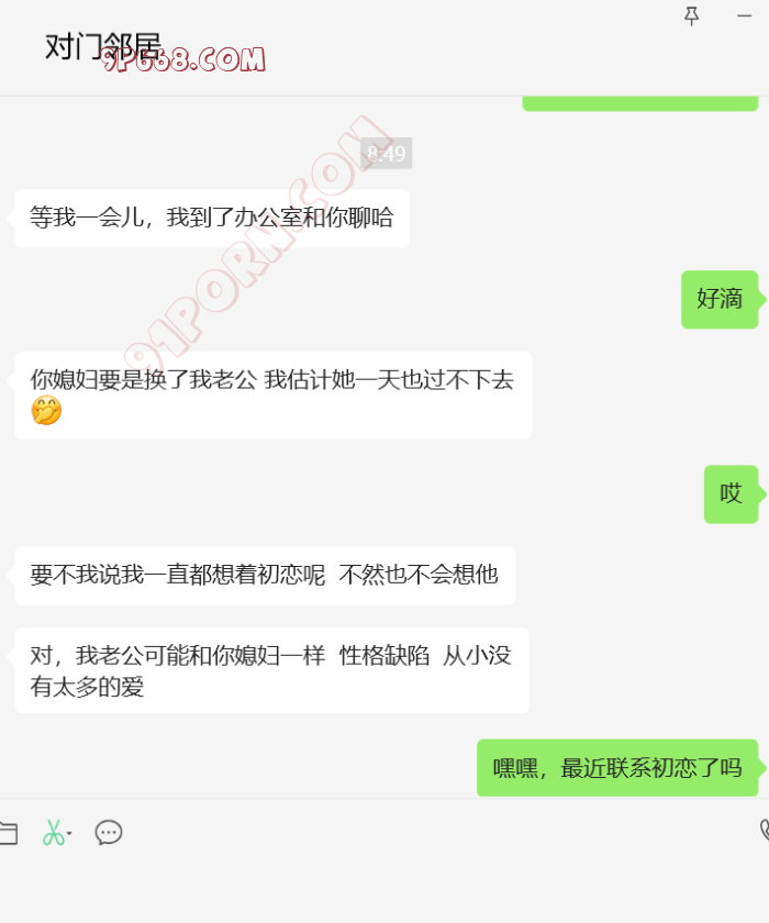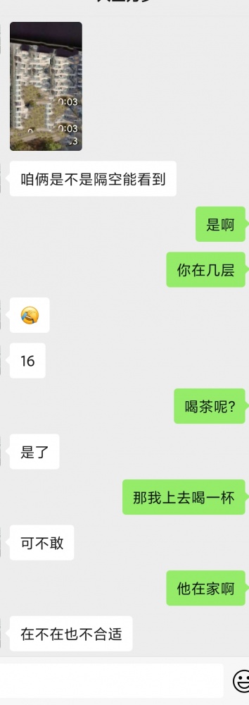 一年前在小区旁边运动场打羽毛球认识的小区邻居,本来是很正常的运动,球场上互相找搭子一起运动很常见,颜值很身材都在线,但遇见她时也没有任何非分之想,直到打完球在场边休息时,她脱了鞋换上了一双白袜子,穿上袜子很自然的勾起的脚指头做了做调整,让我不自觉的就有了生理反应,话不多说,开始尝试加她,于是问她是不是经常来打球,知道了是我的邻居,后来比较自然的加了微信好友。事情就是很奇妙,认识了就会总遇见,没过几天我和老婆下楼做核算,低头走路一双穿着透明凉高跟的美脚出现在了前方,不看不知道,一抬头原来是她,穿着灰色的包臀长裙,礼貌性的打了个招呼,因为老婆在旁边,没好意思再怎么样,老婆还问我她是谁,我当然如实交代,本来就是球友。但这次之后就不在怎么联系了,直到前几天无意刷到了她的抖音,看见她的IP是河北,以为搬家了,出于好奇问了一句,然后就开始了下面的对话,狼友们帮我分析一下有没有戏?要不要继续发展?如果大家支持,我就定期更新进展。 .