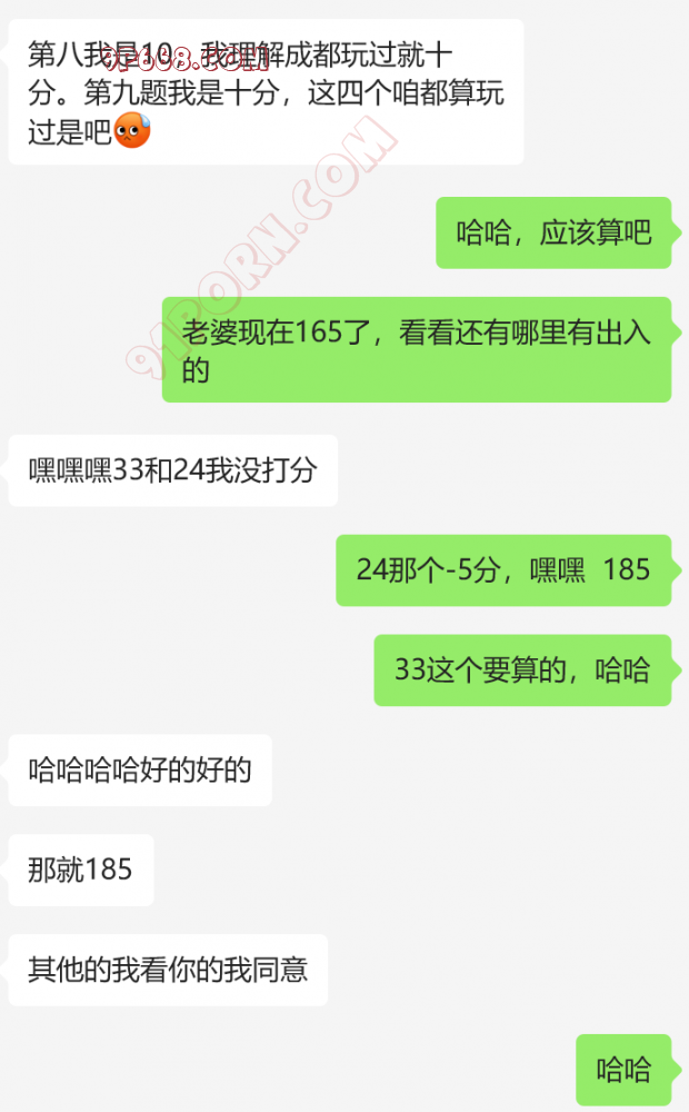 23.和男朋友老公以外的人裸聊加10分,10分