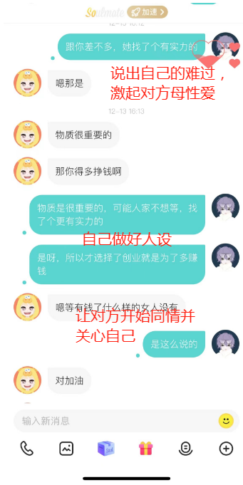 第三:积极倾听,适当展示脆弱在聊天的过程中一定要积极回应女生,这样她就知道,你在认真地听她说话,她会对你印象更好一点。在女生的话说完之后你一定要很快地接下去,不能让气氛出现冷场。当然,聊天时候一定他要放下伪装,不要觉得男生就应该坚强一点,男生就没有烦恼,不要太大男子汉主义可以在聊天的过程中祖露自己的心声,试着适当地说说自己的烦恼和难过。这样女生会意识到,你愿意和她进行更深层面的互动交流