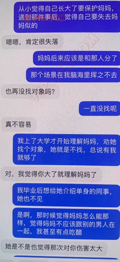 儿子加我后,经过简单沟通,儿子在外地上班,妈妈在 当地上班,儿子1998年,妈妈1974年,通过抖音关注妈妈,结果妈妈回关了,还是用老套路,介绍自己对单身妈妈的孝顺,然后引入恋母话题,引导妈妈好奇此话题。