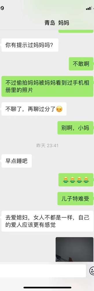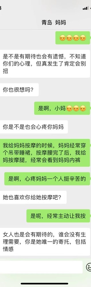 说的对哦,加上第二天,估计妈妈已经被我撩的春心荡漾的不行了,后来结束了话题,睡觉了,今天不怎么理我,估计是昨天聊的太猛了。