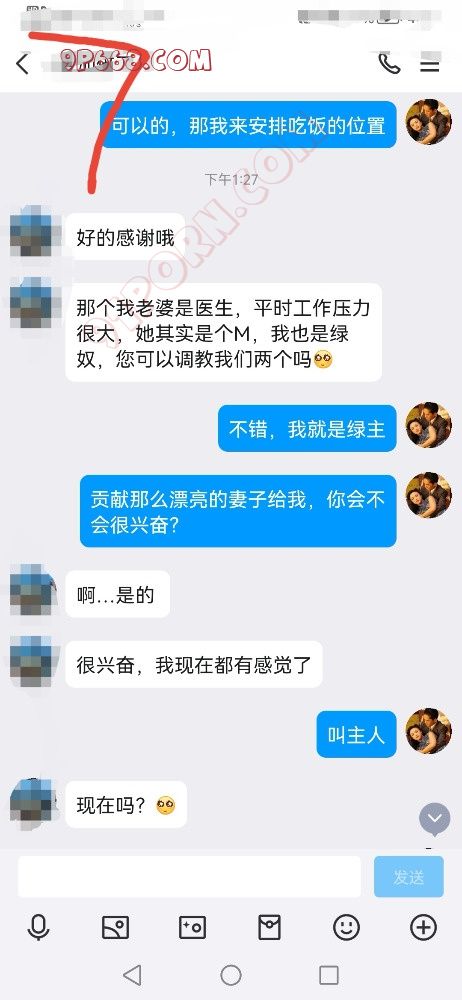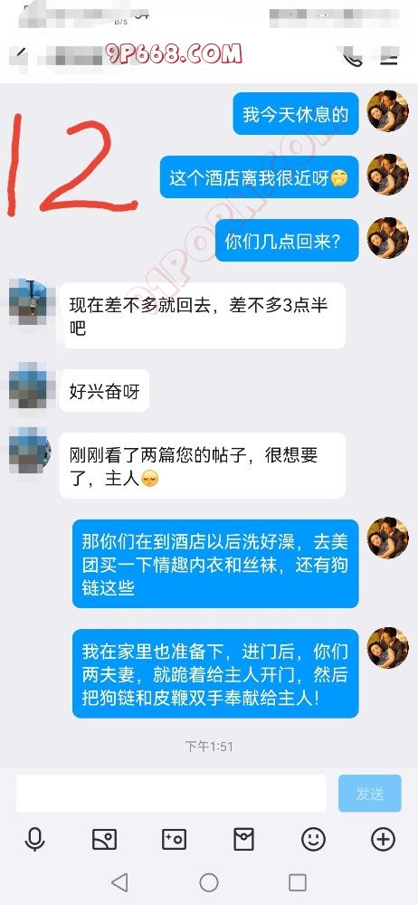 他们是长沙的夫妻来杭州旅游,通过朋友介绍加的我,简单沟通后双方就感觉挺好,沟通后了解带到他们是绿奴夫妻,但是之前玩的都是简单的单男都只顾自己感受,虽然玩过几次,但体验感都不是很好,所以很想找一个懂他们的绿主单男吧,他们夫妻平时工作压力很大,所以很想有个主来调教他们,让他们诚服,得到主人的认可,丈夫渴望把美丽的妻子献给强壮强势的主人,看着主人玩弄他最心爱的妻子,把他的妻子调教成一只荡妇形态,来满足自己内心的绿帽奴情结。按照见面前的要求,我下午4点左右来到酒店房间门口,按下门铃,门开启后,一个美丽的人妻就跪在酒店房间门口处,脖子上戴着狗链,双手把狗链举过头顶给我…她丈夫开完门也跪在妻子旁边,双手举着一根打屁股的小鞭子,我接过狗链和皮鞭,牵着母狗往前走到沙发旁边坐下,她跟着跪爬过来,后面跟着她的丈夫也跪爬过来,两夫妻就跪在我面前,我让他们两夫妻跪好,双手放在膝盖上,身体往前倾,头低着,不准他们平视我,我说:现在我们开始认主仪式,从现在开始,你们要绝对服从我,心里要把自己当成一只很贱的狗,现在心里默念三遍“我要当青哥的狗奴”,然后给主人说,先是她丈夫说的:主人,我要当青哥的狗奴,然后是她老婆说的。我接着说:接下去调教如果你们比较爽的时候就叫主人或者爸爸,如果接受不了的就说:主人我有点不舒服,我就收到信号了!