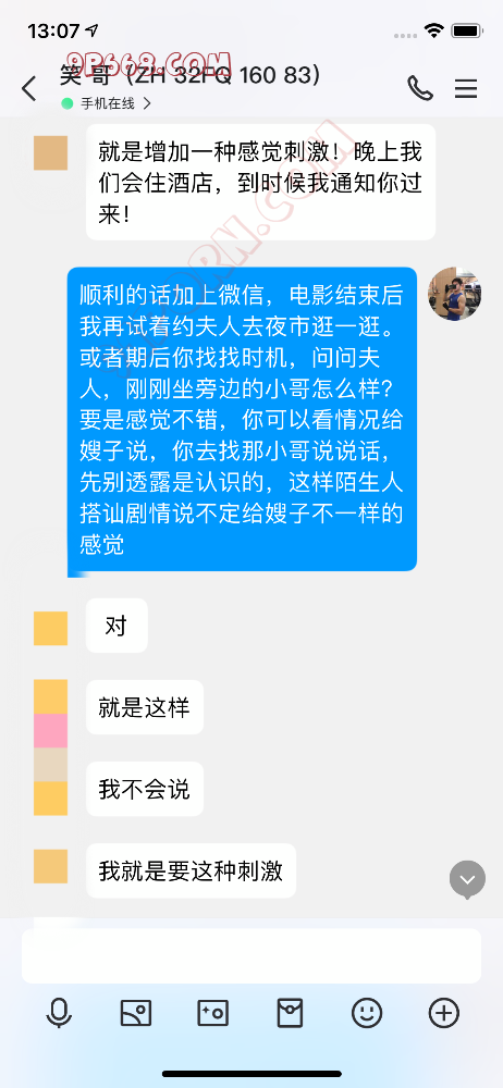 这次要分享的2024年四月13号的一次活动,这对夫妻是珠海同城的,32岁左右,之前交流了几天,没想到我和丈夫交流的非常愉快,可能是我比较懂他绿帽的心里状态吧,我们想好了活动内容(电影院陌生人搭讪剧情),然后安排了活动时间,当然这一切对他妻子都是保密的,他妻子应该也会享受这种陌生带来的刺激和兴奋,他妻子只以为是丈夫临时起意想去看电影,其余的内容一无所知。