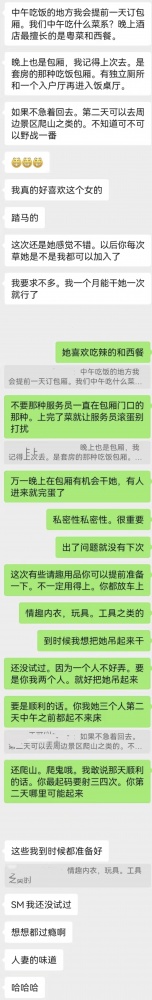 两大淫贼的谋划越来越具体,看的我是血脉膨胀~ 这种感觉又有点第一次老婆跟老崔偷情前老崔向我汇报情况的感觉了~
