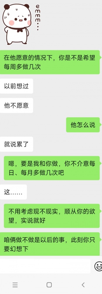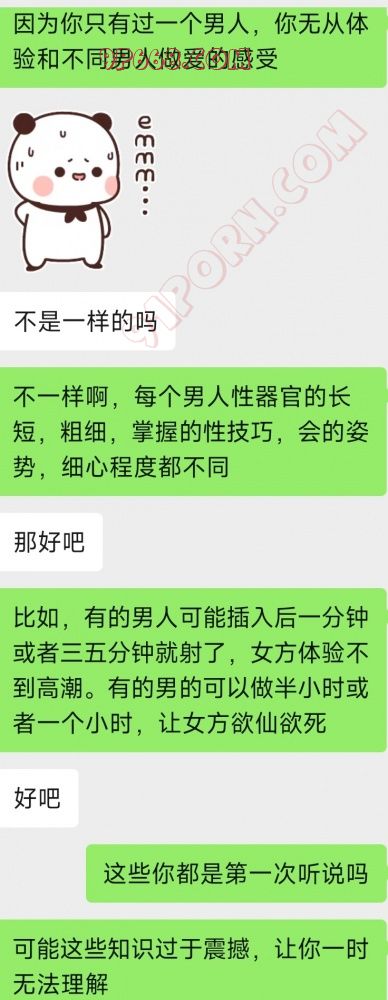 女老师是95后,疫情期间她还在读书,在学校群里认识的,约见过一面,吃了饭。当时她是处女,没发生关系。毕业后她回家结婚,有一年了吧。后来屡次联系她,一直没回复。最近有事求助我,才联系上她。指导她炒股,慢慢聊到了性方面。她只有过老公一个男人,和结婚前一样保守。聊天中可以看出,她缺乏性经验,老公也很少和她做,她可能有点不满足,而且也挺好奇的。不过,她是那种乖乖女,非常保守,每次提到要和她做,就顾左右而言他,或者不说话了。不知道接下来如何开发她,是否要先冷上她几天。